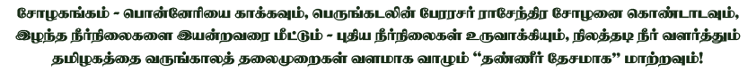 - To strengthen the demands to revive the entire water bodies and water management systems of Chozha kings;
